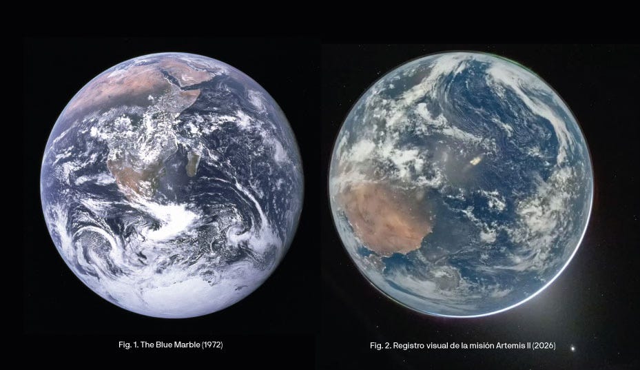 Este post fue algo que empecé a escribir en un stories y se me fue de las manos. Qué hermosos son esos vídeos donde lxs astronautas nos recuerdan que somos especiales. Tras el reciente lanzamiento de Artemis II, no puedo sino venirme a mi satélite particular Piedras que encuentro a pegar un par de gritos al vacío ciberinterestelar. Resulta imposible no caer de rodillas frente a la retórica superior de una imagen que encapsula todo lo que somos.
